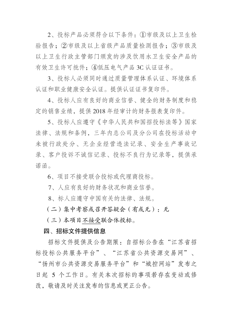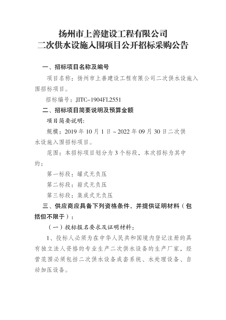 扬州市上善建设工程有限公司二次供水设施入围项目公开招标采购公告