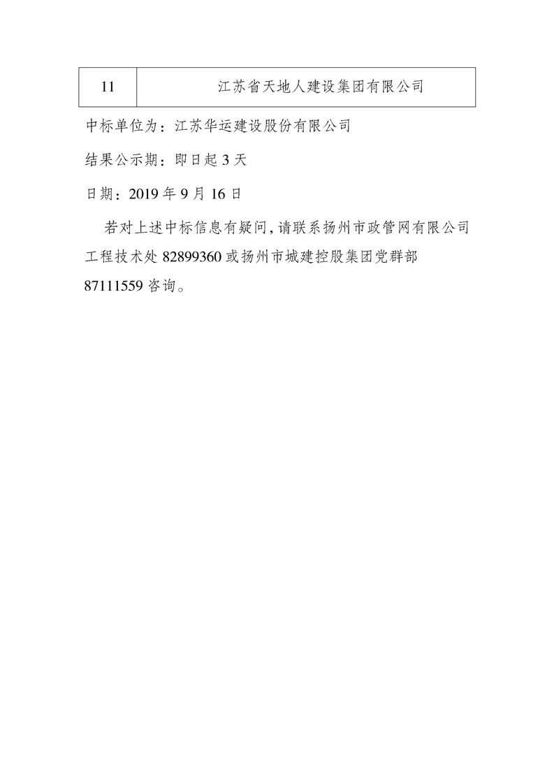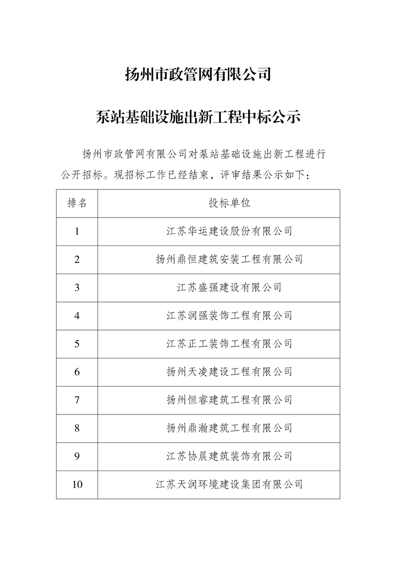 扬州市政管网有限公司泵站基础设施出新工程中标公示