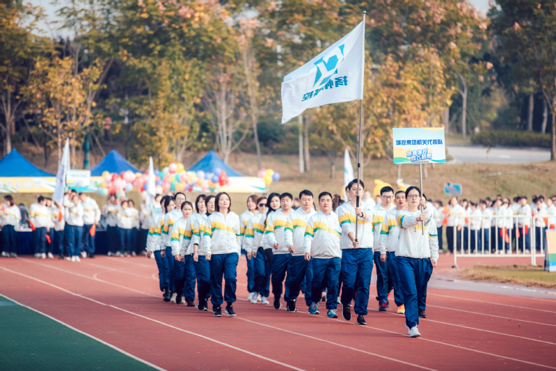 伴随着节奏鲜明的《运动员进行曲》,仪仗队员护拥着鲜艳的五星红旗、集团旗、二十周年旗,引领着精神抖擞的各代表队运动员方队步伐矫健地走进体育场,运动会在庄严的国歌声中拉开序幕。