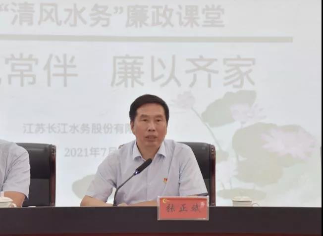 城控集团党委委员、长江水务党委书记、董事长张正斌发表讲话,他分别从家和万事兴、量变引起质变、小心成为“猎物”这三个方面给在场所有人员再次敲响廉政警钟。他表示,长江水务多年来各项工作取得的长足发展,饱含全体员工的辛勤付出和努力,更离不开职工家属的关心与支持。家风是党风的重要组成部分,家风连着党风,家廉才能政廉,全体党员干部要从百年党史中传承优良家风,把修身齐家落到实处,要和家人同心协力,守好家庭防线,真正把家风建设内化于心、外化于行,做到修身律己、廉洁齐家,为扎实推进公司全面从严治党向纵深发展,谱写公司高质量发展新篇章提供坚强保障。