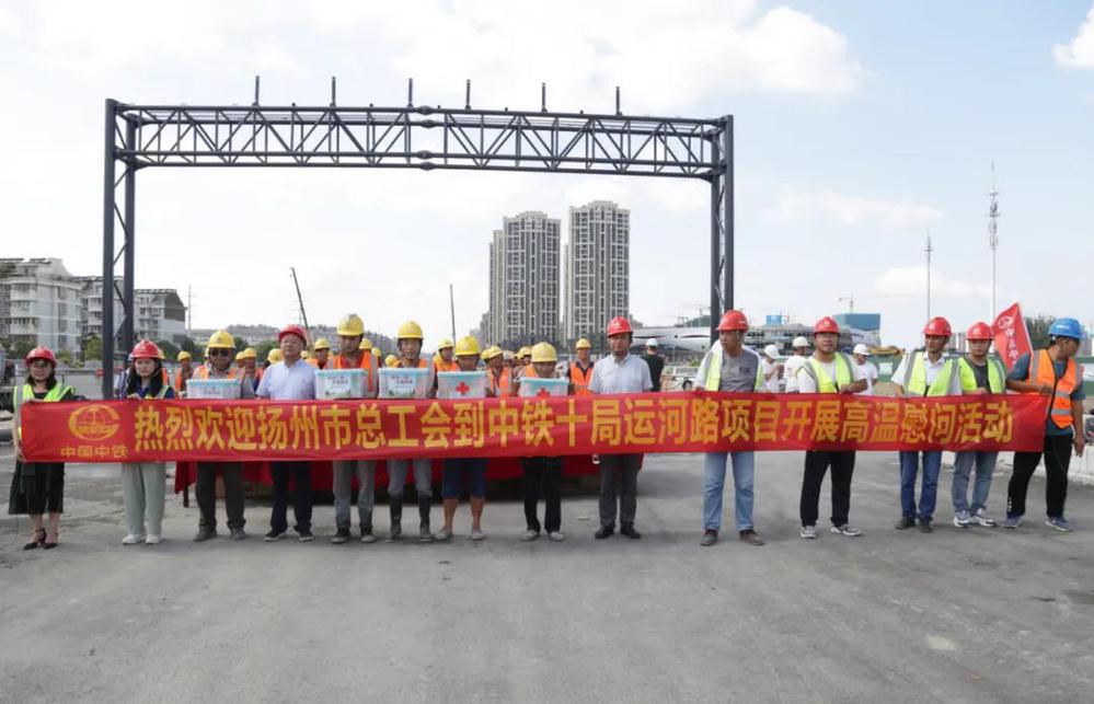 7月22日,扬州市总工会兼职副主席、市人社局副局长王锦程,扬州市总工会副调研员樊秉强一行先后来到润扬快速路和运河快速路施工现场,走访慰问高温下坚守一线的施工人员。市总工会劳动和经济工作部部长贺光明、副部长周飞,市建设产业工会主任范华陪同慰问。城控集团副总经理季红军、万福公司主要负责人参加了慰问。
