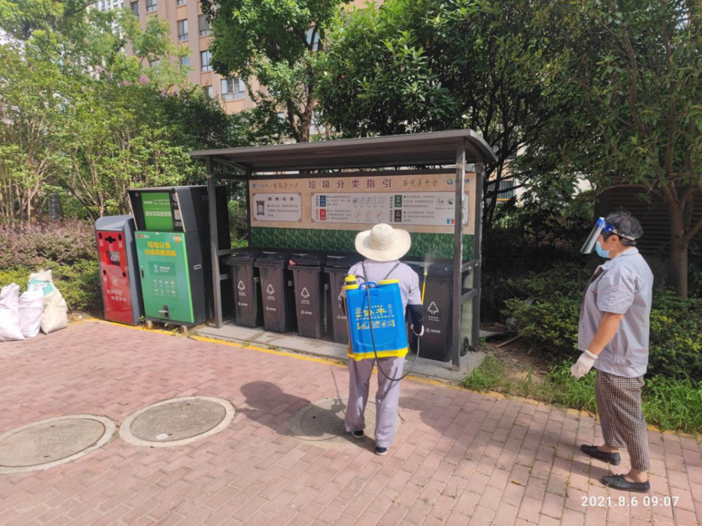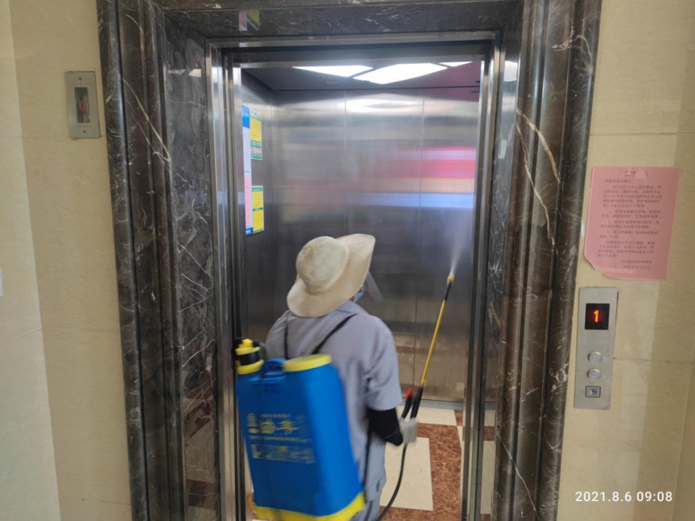 而在京杭融园小区内,保洁人员也各就各位,各司其职,认真细致的做好每日消杀工作。室内的电梯、楼层门厅、入户大厅和室外的垃圾桶,垃圾池,是重点消杀区域。健身区域、儿童游乐区和公示栏前虽然已经几乎没有人,但也不能放松,还是要进行喷洒。警戒线周围更是需要反复消杀,加密消杀。