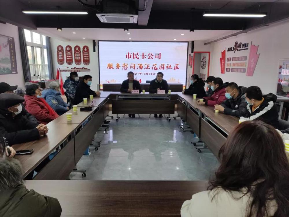 为扩大党史学习教育对党员干部的影响力和覆盖率,进一步践行初心使命,市民卡公司充分发挥党员先锋模范作用,结合公司“我为群众办实事”实践活动安排,12月29日上午,市民卡公司党员志愿者服务队来到汤汪花园社区开展服务工作座谈会,面对面近距离听取民声民意,并慰问了社区里的困难居民。