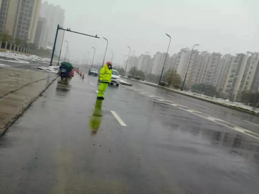 为应对降雪可能造成的路面结冰,作为市民“返乡复工”重要通道的快速路的安全、畅通尤为重要,快速路应急小组提前部署、严阵以待,及时配合市住建、交管、城管、消防等部门启动恶劣天气应急处置预案,迎战风雪。