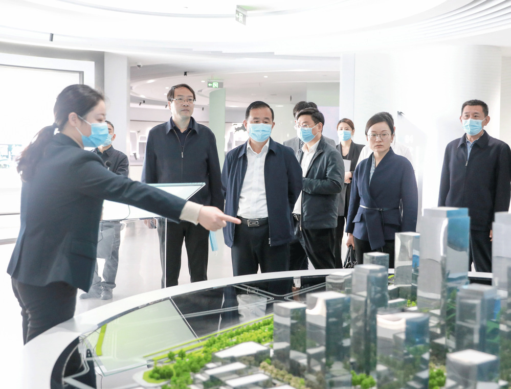 在生态科技新城城市展厅,叶善祥详细了解生态科技新城的发展规划,对生态科技新城高起点规划、高标准建设、高品质推进扬州新中心建设工作表示赞许。