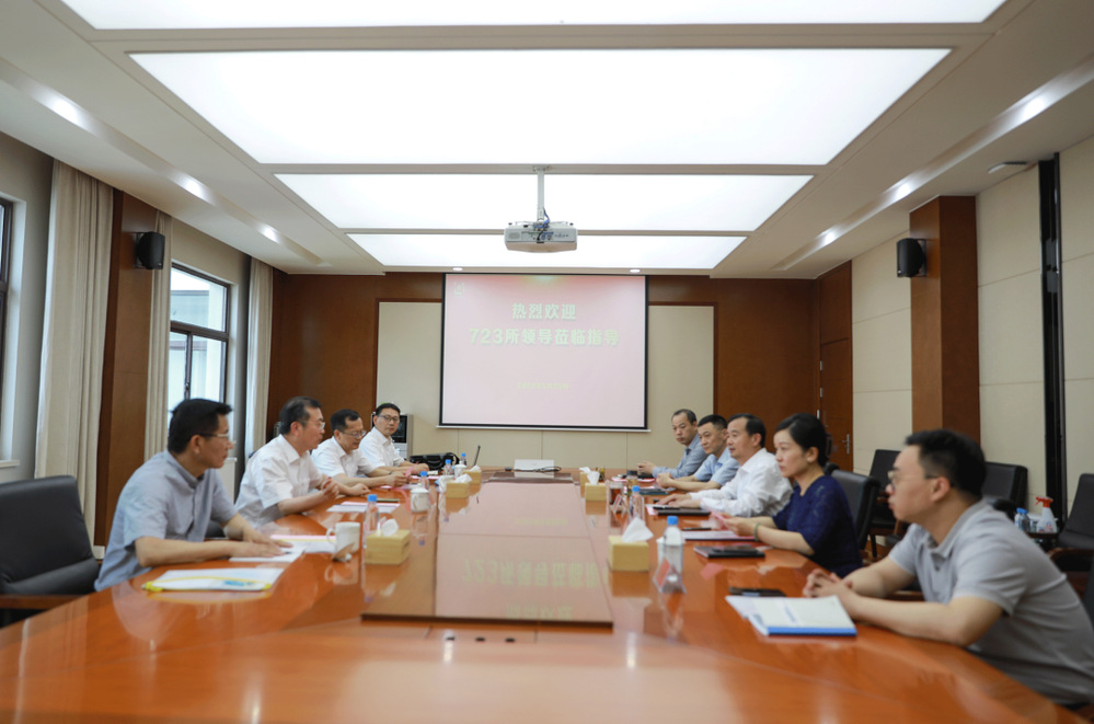 5月25日下午,集团党委书记、董事长叶善祥热情接待了中国船舶重工集团公司第七二三研究所党委书记余宏明一行,双方就加强土地合作开发等方面进行深入交流。集团党委副书记、总经理潘涵,党委委员、副董事长戚磊及相关部室负责同志参加座谈。