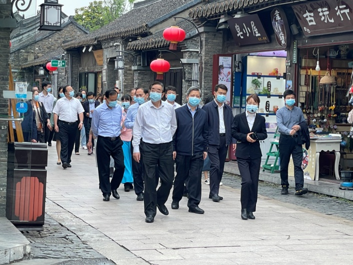 5月26日下午,江苏省人大常委会副主任许仲梓带队到东关街调研。省人大常委会副秘书长朱有华,省人大常委会教科文卫委主任陆永泉,省委宣传部副部长徐宁等领导陪同调研。市人大常委会主任孔令俊,市人大常委会副主任韩方,城控集团党委书记、董事长叶善祥及市相关部门负责人参加活动。