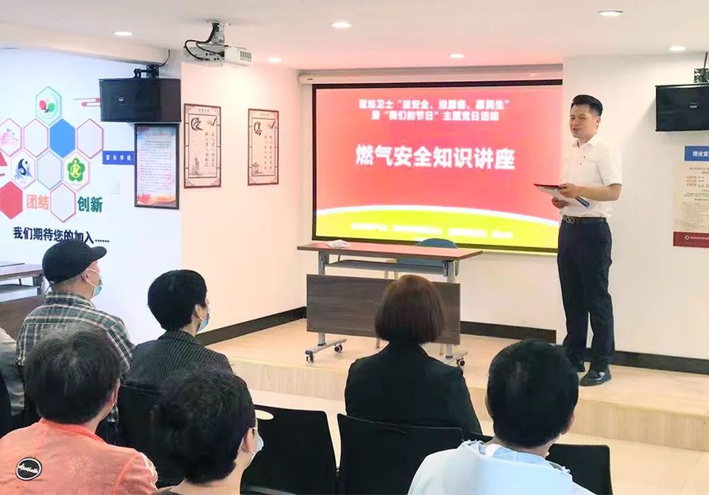 经96169呼叫中心前期回访安检数据,排查出汤汪花园还有用户使用无熄火保护装置的灶具,所以为该小区居民举办一场安全讲座至关重要。在社区会议室,蓝焰卫士为社区居民们播放安全事故宣传视频,围绕“家庭用气安全常识、室内燃气具的安全使用、发现漏气正确的处理方式和自我保护措施”等方面开展安全常识讲座,并进行有奖互动问答。针对燃气灶熄火保护装置,蓝焰卫士结合图文详细讲解其部件构成、工作原理与安全重要性,从如何选购合规灶具、熄火保护装置自查、灶具使用年限等方面,对居民用户们进行了特别提醒。