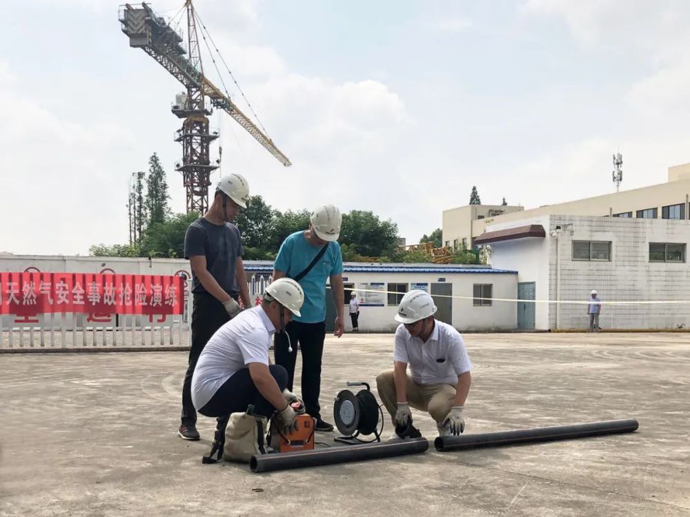 此次演练模拟工作人员在日常巡检中,发现PE100燃气管道损坏,导致天然气泄漏展开应急处理。发现险情后,公司立即启动应急预案,迅速安排应急抢险人员进行现场处置,关闭气源及加压站调压设施、设置警戒线、进行现场环境浓度检测,最终排除险情恢复供气。