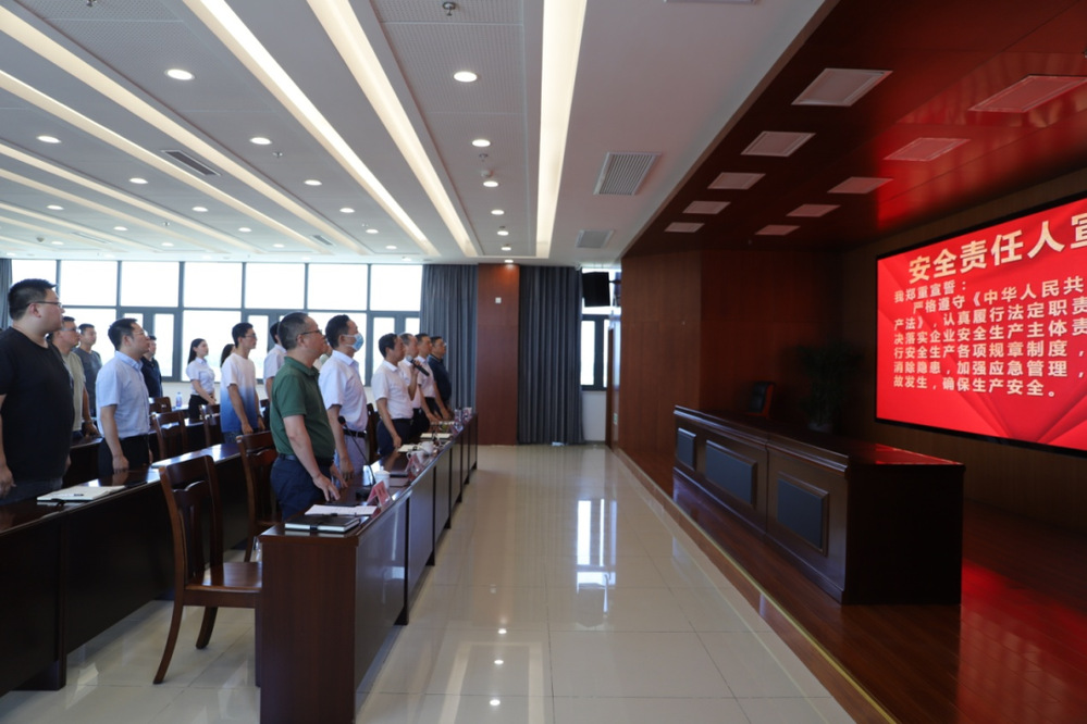 首先参会人员观看了生产安全重大事故警示教育片《红线》,通过一个个血淋淋的事故,警示我们安全生产容不得一丝丝麻痹,安全生产是底线,发展决不能以牺牲人的生命为代价这是一条不可逾越的红线。随后,公司党总支书记带领全体参会人员进行了安全生产责任人宣誓。他强调,一是要把安全生产这根弦绷的紧而又紧,戒除麻痹思想,不断提高安全意识。二是要把安全生产责任抓得实而再实,坚持“三管三必须”,按照“党政同责、一岗双责、齐抓共管、失职追责”的要求,切实加强对安全生产工作的组织领导,建立健全安全生产责任清单。三是要把隐患排查治理抓得严而再严,常态化推进安全生产隐患排查治理,要坚持问题导向,持续开展安全生产隐患大排查大整治。
