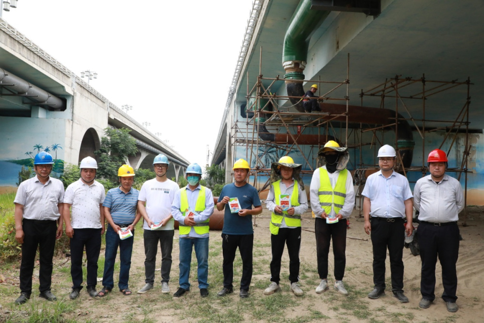 活动中,公司志愿者来到东部及南部主干线热网工程二期建设现场,对临河涉水施工、应急设施配套、工地消防管理和安全技术交底等情况进行了督导检查,并结合存在问题,为施工人员普及了汛期高温施工安全注意事项及具体防范措施。随后,志愿者向施工单位管理人员宣贯了施工企业安全生产管理规范及其法定安全职责,现场发放了《安全生产法》最新修订文本、《扬州公共安全教育警示》《“四不伤害”从我做起》等安全法律法规手册和宣传折页,引导工程项目全员树牢安全理念,规范安全管理,提高事故防范与处理能力。