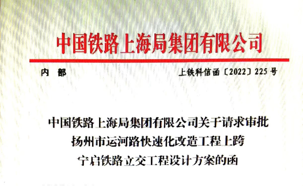 近日,运河路北延工程项目前期手续办理工作取得节点性突破,运河路北延涉宁启铁路节点可研设计方案顺利通过上海铁路局审批。