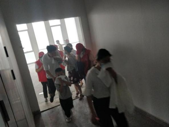 “快!快!快!”,楼层安全员引导着被困人员,通过消防楼梯迅速撤离。此时外围与各出入口已拉起警戒线,禁止与灭火救援无关人员、车辆进入大厦或危险区域,工作人员对大厦所有外围区域进行严管,确保消防通道的畅通,同时将被困人员指引至内街广场安全地带。