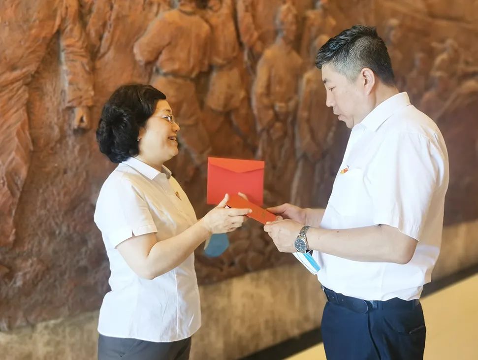 当天下午,第一党支部党员们来到扬州革命烈士纪念馆参观学习,缅怀革命先烈,传承红色精神。在纪念馆内,党员们重温了入党誓词,瞻仰了革命先烈的英雄事迹,追忆革命先烈浴血奋战的光辉历史。活动现场,支部书记为9名退伍军人党员过了一个有意义的集体“政治生日”,向他们赠送了“生日礼物”。