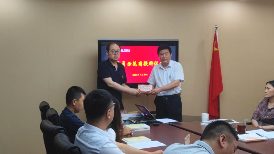 会上,党支部举行了党员示范岗授牌仪式,公司党支部书记为党员示范岗授牌,号召党员学习他们不怕吃苦、甘于奉献、攻坚克难、勇于担当的精神,形成学习先进、争当先进的良好氛围。