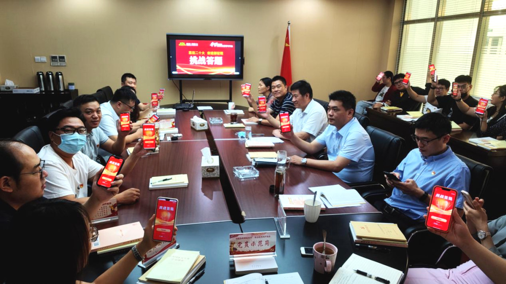 最后,参会人员共同参与了“学习强国”“喜迎二十大,奋进新征程”学习达人挑战赛。活动充分调动了党员干部运用“学习强国”学习平台的积极性和主动性,使线上学习成为常态,线下学习融入日常,营造了“比学赶超”的浓厚学习氛围。