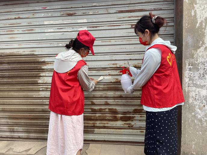 活动中,志愿者们主要针对老城区的墙面、路边、公共设施等乱张贴小广告进行清理,志愿者们分工协作,利用喷壶、铲刀等工具,冒着炎热天气,不怕脏、不怕累对小广告的“寄生地”进行清理,经过数个小时的努力,“牛皮癣”现象得到有效改善。