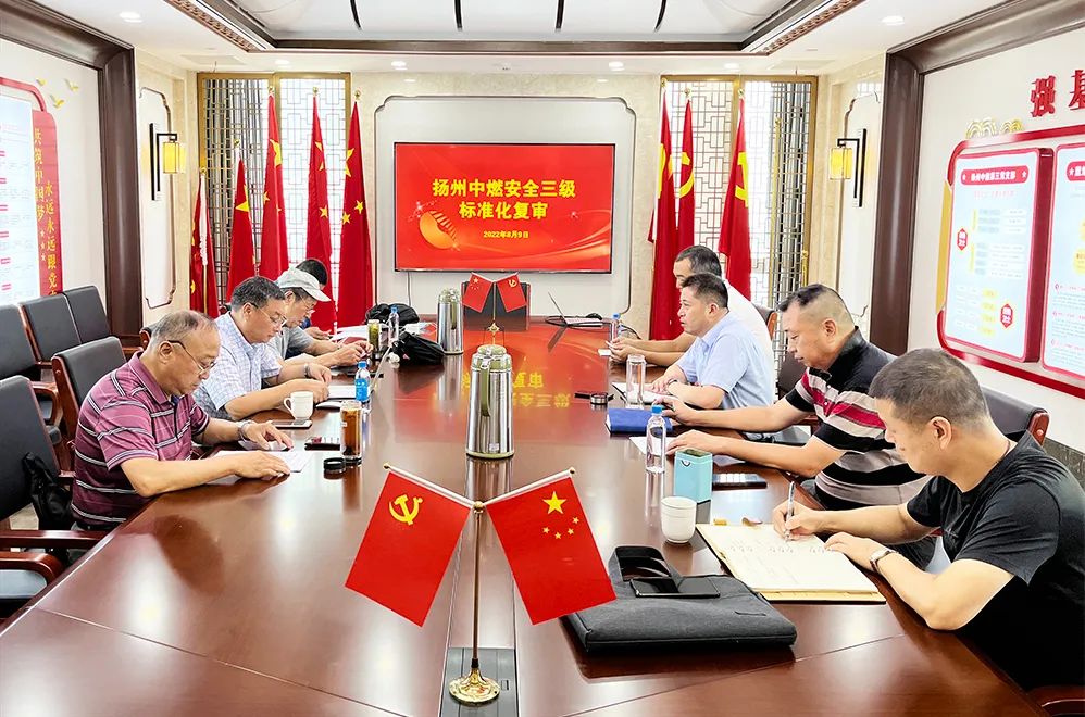 8月9日,扬州市邗江区安全生产科学技术协会秘书长孙成飞带队,到扬州中燃公司开展安全生产标准化三级达标评审。扬州市级安全专家、具有国家标准化考评资格的人员担任评审,扬州中燃安全总监、有关部门代表参加会议。