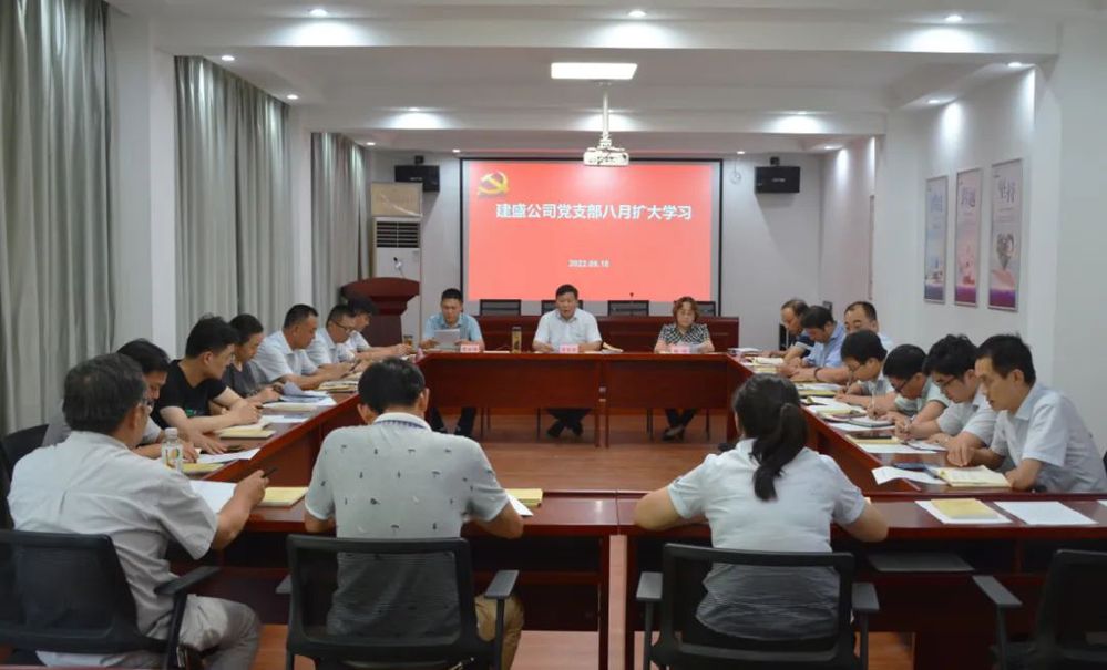 8月18日下午,建盛公司党支部召开支部(扩大)学习会。公司领导班子成员、中层干部、全体党员和入党积极分子参加会议。