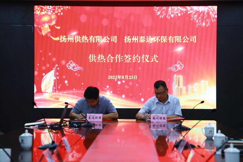 8月23日下午,供热公司与扬州泰达环保有限公司成功签署供热合作协议。杨庙镇、扬州泰达环保及供热公司相关负责人参加签约仪式。