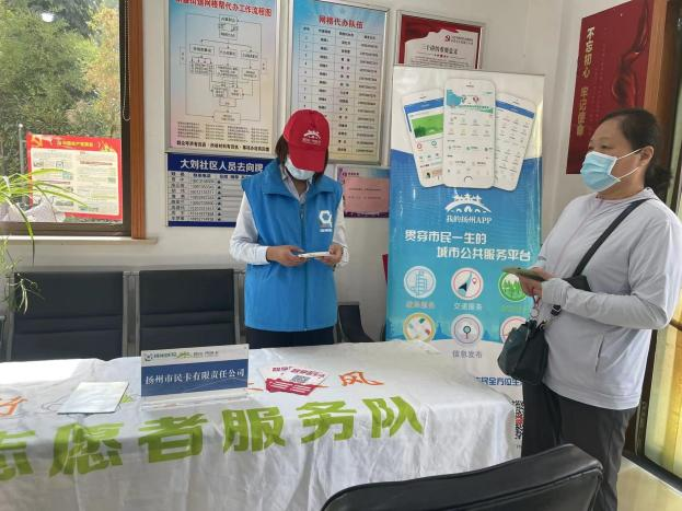 志愿者们充分利用市民卡服务资源,在活动现场设置便民流动服务点,为社区居民提供市民卡充值、年检,免费更换卡套服务。除了提供“零距离”服务外,志愿者们还积极宣传普及了可以足不出户办理业务的“我的扬州APP”,帮助现场群众下载、安装,并一对一指导,获得群众的一致好评。