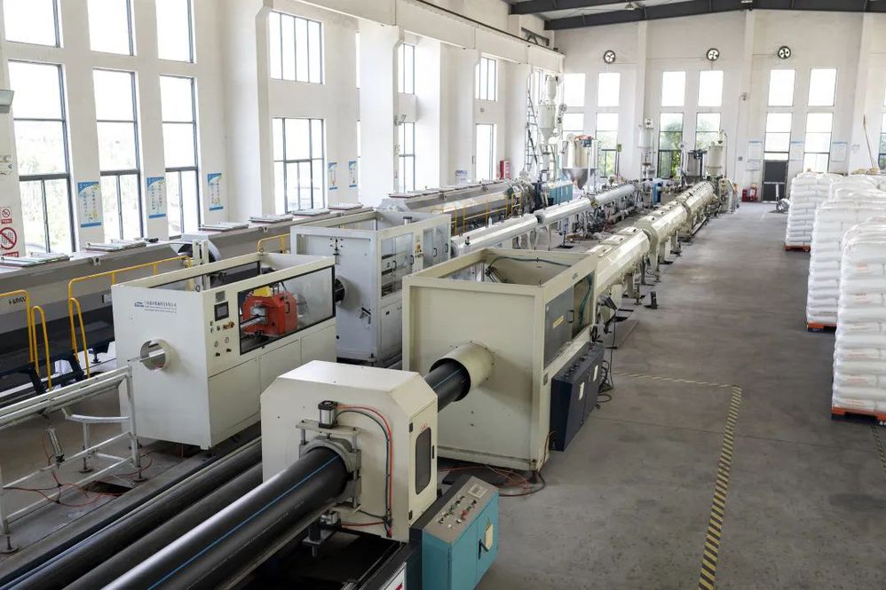 近日,长江水务公司长江塑管全新引进DN315-DN630 PE管生产线,经安装、调试成功后,现已顺利投产运营。