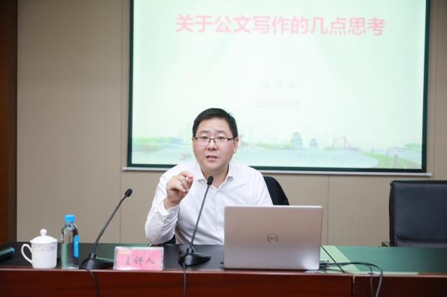 张清山以“公文写作的几点思考”为切入点,结合国企工作实际,生动详实、深入浅出地从工作总结、工作汇报、信息、领导讲话心得及办文办会五个方面向大家介绍国企公文写作知识的重点及要点内容。同时,他鼓励干部职工勤学善思、打开格局、握紧“笔杆”,坚持党性为先,突出政治性、专业性、针对性,做到文章合时而著,争取让文章从心里淌出来,从手里磨出来。