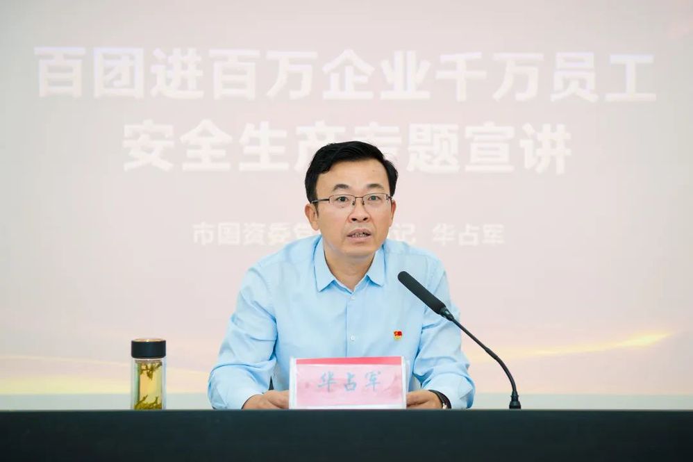 华占军从深刻学习领会习近平总书记关于安全生产的重要论述、新《安全生产法》的修订背景及重点内容、企业需要重点关注的安全事项三个方面进行宣讲。