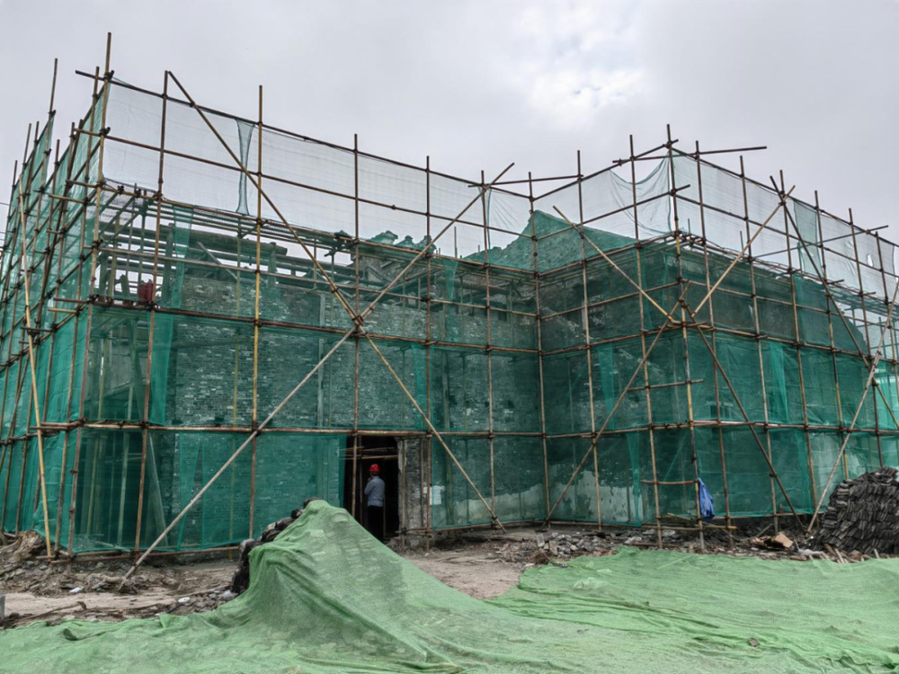 本次修缮建筑面积约800㎡,通过现场查勘,酱园临街店面采取揭顶不完全落架大修,其余建筑落架大修,进行墙体、屋面修整。目前已完成脚手架搭设,完成了屋面、墙体(除需要保留的墙体外)拆除,对保留的木构件进行了白蚁防治等工作。在施工过程中,名城公司将做好扬尘管控、噪声管控等相关工作,对周边百姓的影响减少至最低,整个项目力争12月底前完成。