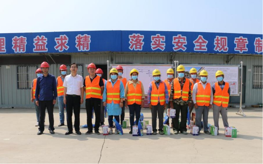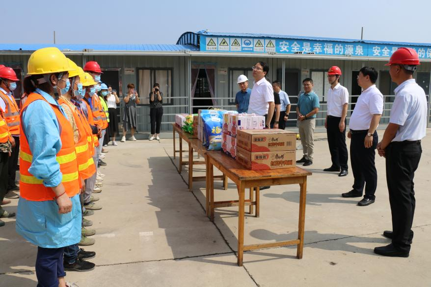 上善公司在确保项目施工安全和项目质量的前提下倒排工期、加班加点,全面推进项目建设,国庆假日期间,上善公司领导班子高度重视、下沉一线,现场指挥。生态科技新城党工委书记也带队对一线员工进行了慰问,向坚守在工地的员工表达感谢,并给大家送去节日的问候以及慰问品。