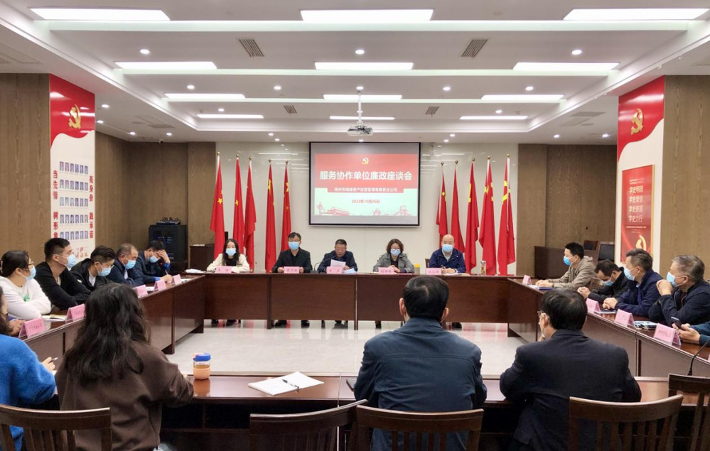 为持续抓好公司党风廉政建设工作,进一步提升廉政风险防控意识,全面落实从严治党主体责任,根据集团廉政工作有关要求,10月26日,资产公司组织召开了服务协作单位廉政座谈会。公司联合党支部支委班子成员,相关处(部)室和物业公司负责人,公司纪检监察员以及20家服务协作单位负责人(代表)参加了座谈会。