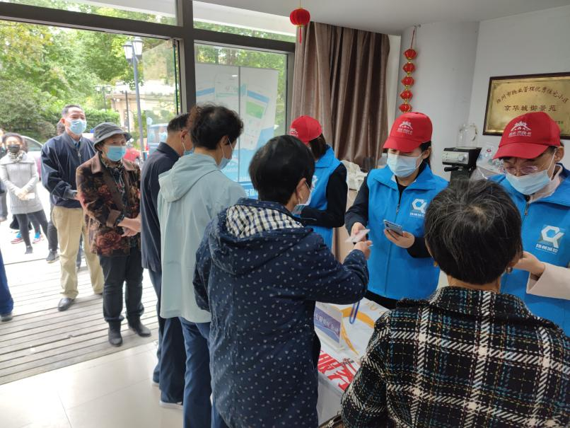 早上9点,“e飞扬”志愿服务队的志愿者们穿上蓝马甲,准备好带有NFC功能的智能手机早早地等待在京华城御景园客户服务中心。活动还没开始,闻讯而来的老人们就排起了长队,志愿者们一边分工协作,一边维护现场秩序,温馨提示大家严格按照疫情防控需求,佩戴好口罩,间隔1米排队,一边认真负责地为老年人办理审验,耐心回答用户关于市民卡和“我的扬州APP”使用中的问题。