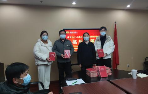 活动分为练习阶段和竞赛阶段,12月3日至12月6日,参赛者可通过微信小程序进入答题界面每轮练习随机50题,每天两次答题练习机会。12月6日下午,在市民卡二楼会议室开展现场竞赛,题目为50道单项选择题,累计分数越高,用时较短者获胜,比赛中,所有队员全神贯注、认真作答,拼手速、比脑力,竞赛现场气氛热烈。领导班子为获奖党员颁发纪念品并合影留恋。
