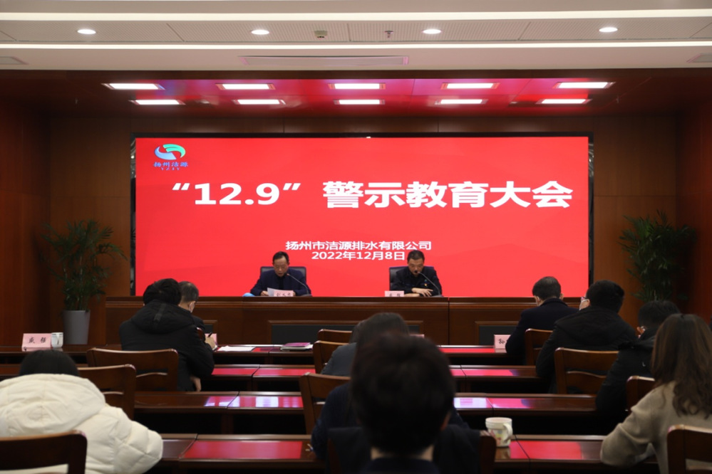 12月8日下午,洁源排水公司召开了“12.9”警示教育大会,公司领导班子全体成员、全体中层干部、助理及重点岗位人员参加了活动。