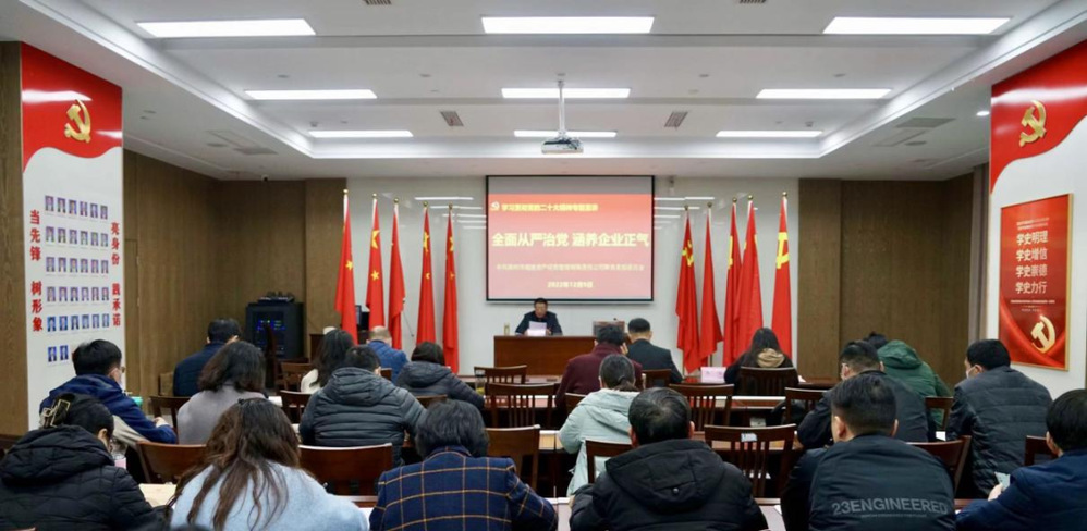 为深入学习贯彻党的二十大精神,坚定不移推进全面从严治党向纵深发展,根据公司学习宣传贯彻党的二十大精神工作计划以及“12·9”党风廉政教育日宣传教育活动方案,12月9日下午,公司联合党支部书记、董事长以《全面从严治党 涵养企业正气》为题,开展了学习贯彻党的二十大精神专题宣讲。公司全体党员、中层干部参加了会议。
