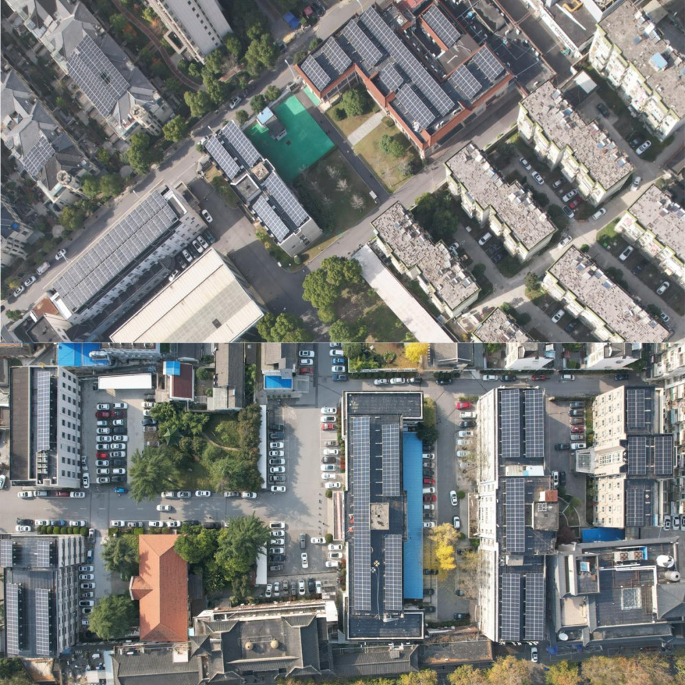 市政府东、西大院分布式光伏项目是我市公共机构1.76MWp光伏项目的组成部分,项目容量697.4KWp,主要利用市政府东、西大院相关机关单位办公楼屋顶上方的闲置空间建设分布式光伏电站。