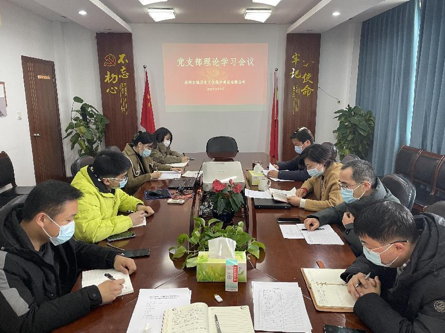 12月14日上午,古城保护公司召开党支部(扩大)理论学习会。公司党支部书记、董事长梁玉荣主持会议并讲话。公司全体员工参加会议。