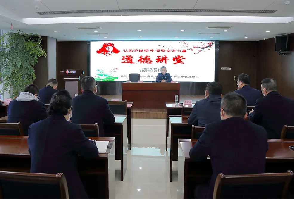 为进一步弘扬劳模精神、劳动精神、工匠精神,用榜样的力量引导和激励干部职工立足岗位创新创造,唱响劳动光荣的时代强音,2022年12月14日下午,扬州中燃公司党委举办“弘扬劳模精神 凝聚奋进力量”主题道德讲堂活动。活动邀请全国劳动模范、全国道德模范、党的二十大代表周维忠同志宣讲事迹,公司领导班子成员、全体中层干部、一线班组长代表参加活动。