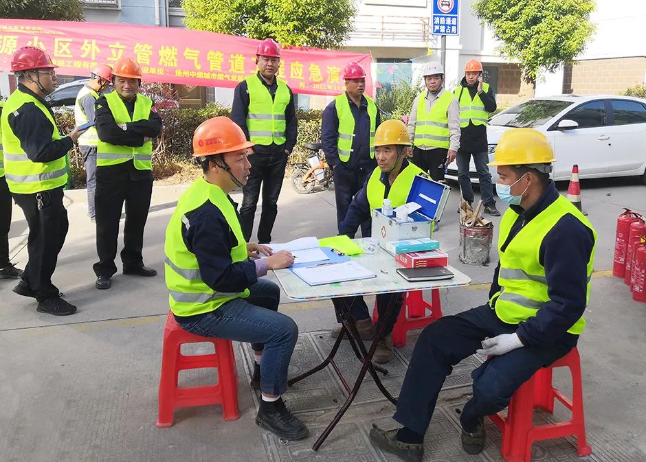 为不断提升应急抢险能力,迅速有效控制和处置可能发生的突发事故,近日,扬州中燃公司组织施工单位、监理单位在建华村华源小区开展立管登高作业和消防演练。扬州中燃公司安保部负责人现场指导。