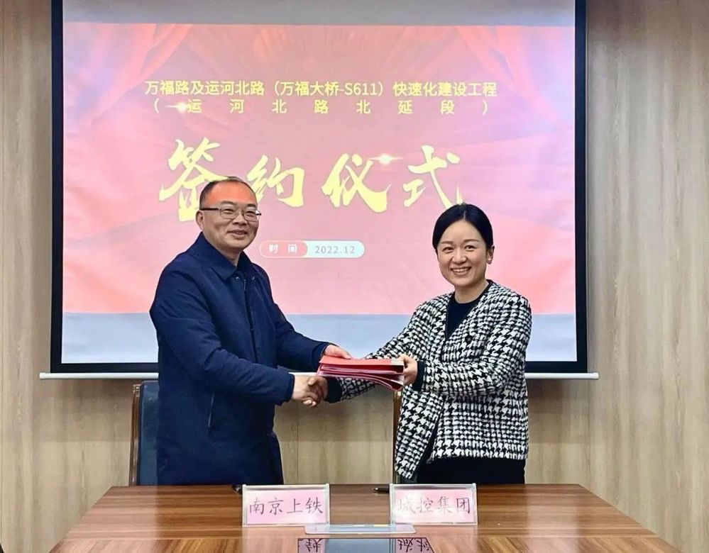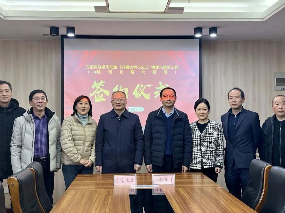 12月30日上午,城控集团与南京上铁地方铁路开发有限公司关于运河路北延一期工程代建事宜顺利完成签约。市政府副秘书长裴东伟、城控集团总经理潘涵、南京上铁公司总经理刘锦军及市住建局、万福公司相关负责人出席签约仪式。