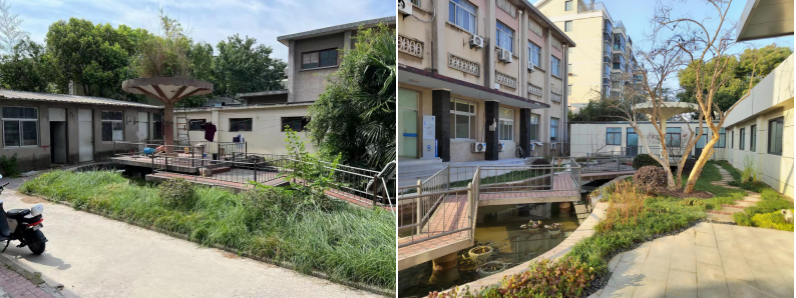 职工们不但自主设计方案,还事事亲力亲为,经过一个月的努力,完成了老旧池塘淤泥清理,布置了睡莲、荷花、鸢尾等水生植物栽种,布景方向以大塘麦冬草为主、石材板料以汀步的形式游走其中,错落有致,水池两边栽种了红枫、黄桃、乌桕,辅以红花继木球、枸骨球等突出层次感,庭院迸发出新的活力。
