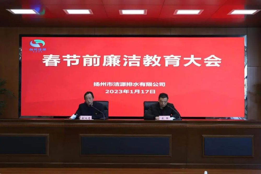 1月17日下午,洁源排水公司召开春节前廉洁教育大会,公司领导班子全体成员、全体中层干部及助理、全体党员、重点岗位人员参加会议。