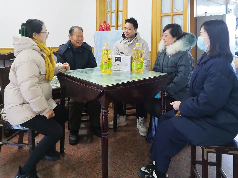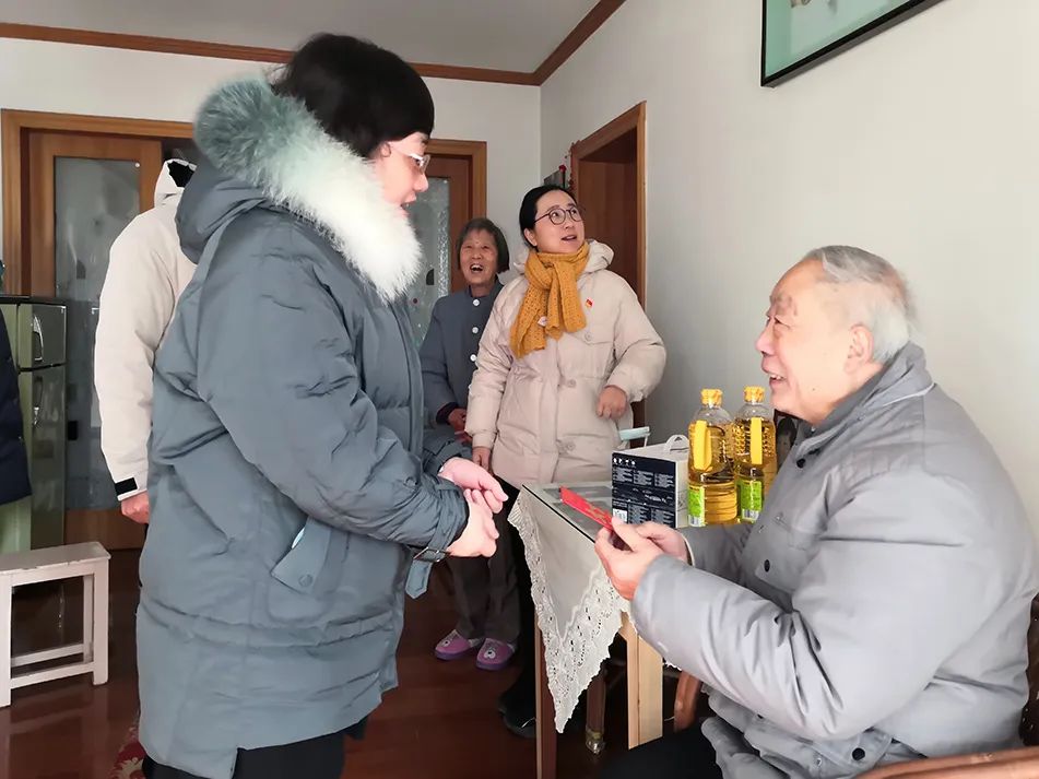 在新春佳节来临之际,2023年1月18日上午,扬州中燃公司第一党支部“蓝焰融惠”志愿者代表来到皇宫社区,在社区负责人陪同下,走访慰问两名退伍老兵,代表公司党委送上慰问金和生活用品,并向他们致以新春的美好祝福。
