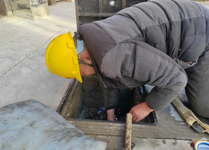 虽然此时的室外气温降至-5℃,但是维修师傅二话不说,脱去外套,拿起工具,撸起袖子,双手浸泡在冰冷的污水中寻找阀门,在关闭阀门后,排出污水,更换冻损水表,为居民恢复了供水。