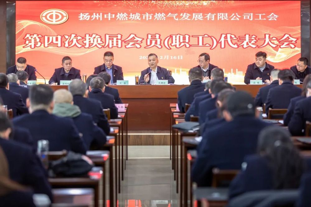 2023年2月16日下午,扬州中燃公司召开第四次工会会员(职工)代表大会,公司党委书记、董事长作了题为《转型发展担使命 凝心聚力谱新篇》讲话。公司领导班子成员、会员(职工)代表和列席代表110多人参加会议。