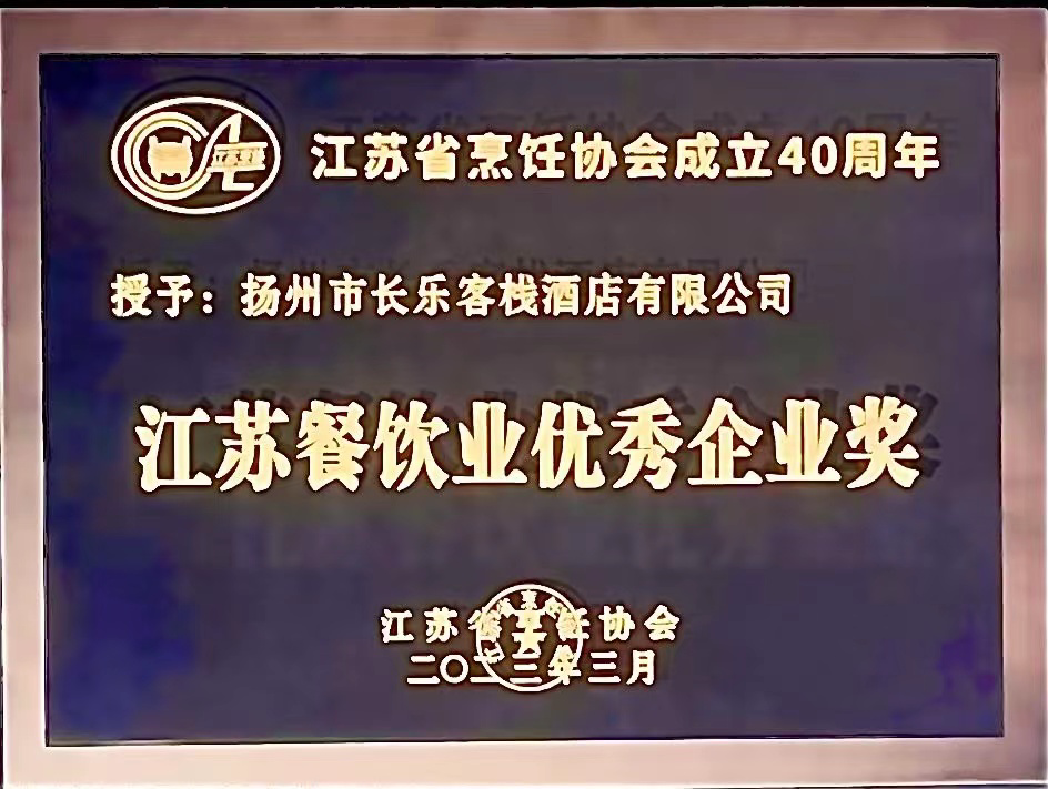 近日,江苏省烹饪协会第七届会员代表大会暨协会成立40周年表彰活动在镇江句容隆重举行,名城公司相关负责人应邀参会,会上宣读了江苏餐饮业优秀企业表彰名单,长乐客栈酒店荣获江苏餐饮业优秀企业称号。
