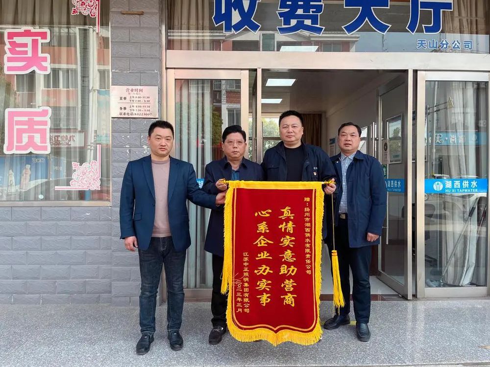 真情实意助营商,心系企业办实事。3月15日是消费者权益日,这天上午,江苏中正照明集团有限公司和大桥(江苏)焊材科技有限公司分别向长江水务湖西供水公司送来锦旗,对湖西公司优化营商环境,支持企业发展表示感谢。