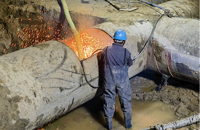 第四水厂DN1200原水输配管道迁改事关城市安全供水,公司领导班子高度重视,多次召集专题会议,踏勘施工现场,论证施工方案。经慎重研究和充分论证,公司决定在不停止供水、适当降压的情况下,利用夜晚供水低谷时段实施迁改工程。公司加强组织领导,树立底线思维,充分评估各种不可预见性因素,把控好施工流程和操作环节,提前排查整改安全隐患,做足做细应急处置预案。