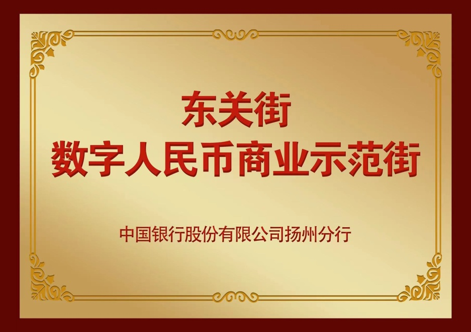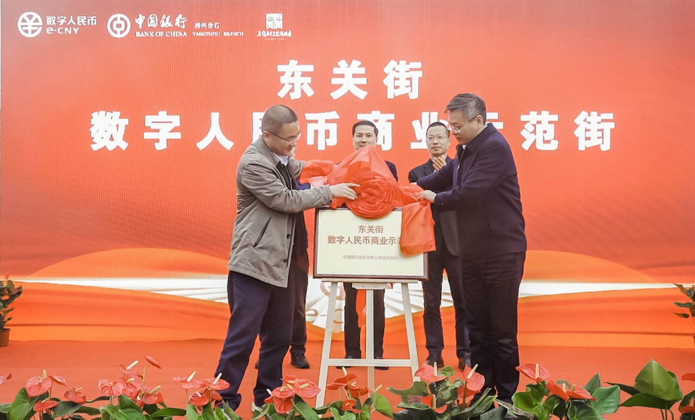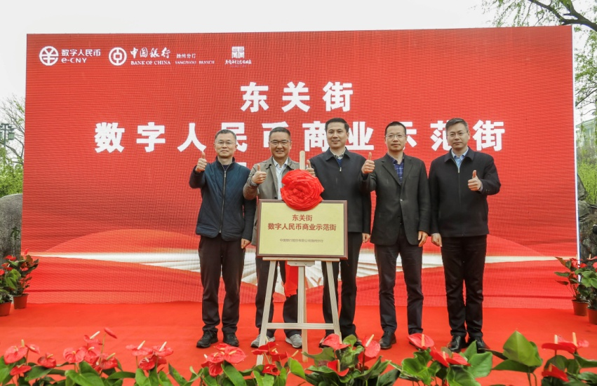 4月6日下午,扬州市首个“数字人民币商业示范街”揭牌仪式在东关街东门广场隆重举行,集团党委委员、名城公司总经理戴兴春,地方金融监管局、商务局、人民银行扬州市中心支行分管负责人共同出席。