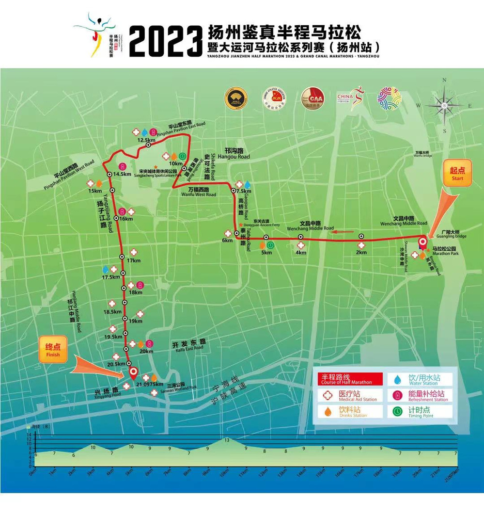 2023年扬州鉴真国际半程马拉松暨大运河马拉松系列赛(扬州站)将于4月16日上午8点鸣枪开跑!